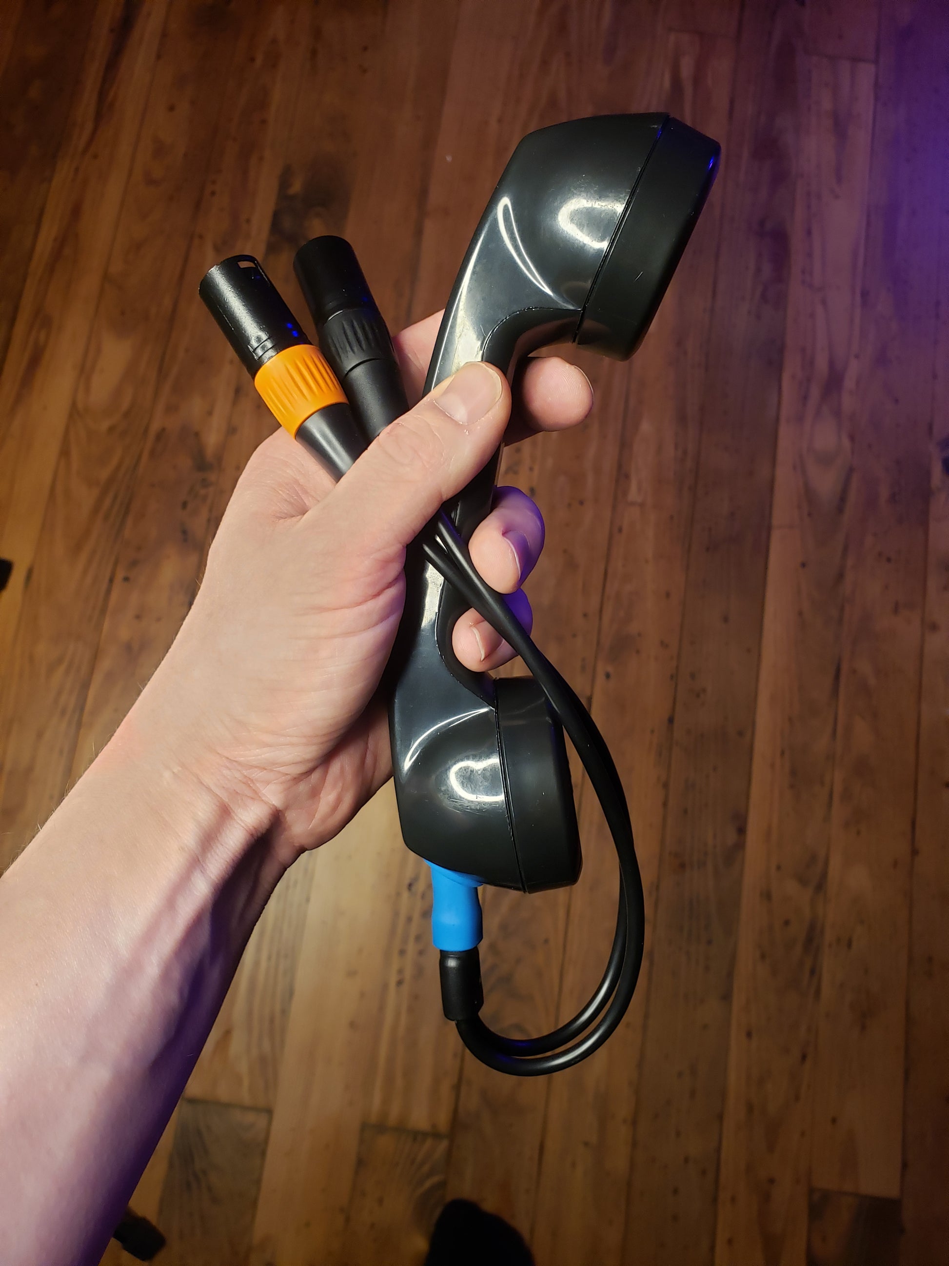 This 2 channel lo-fi microphone is made from an antique pay phone (early 90s). Each channel has an independent output and can be used either separately or together for a stereo effect. Great for both live performances and In studio recording.