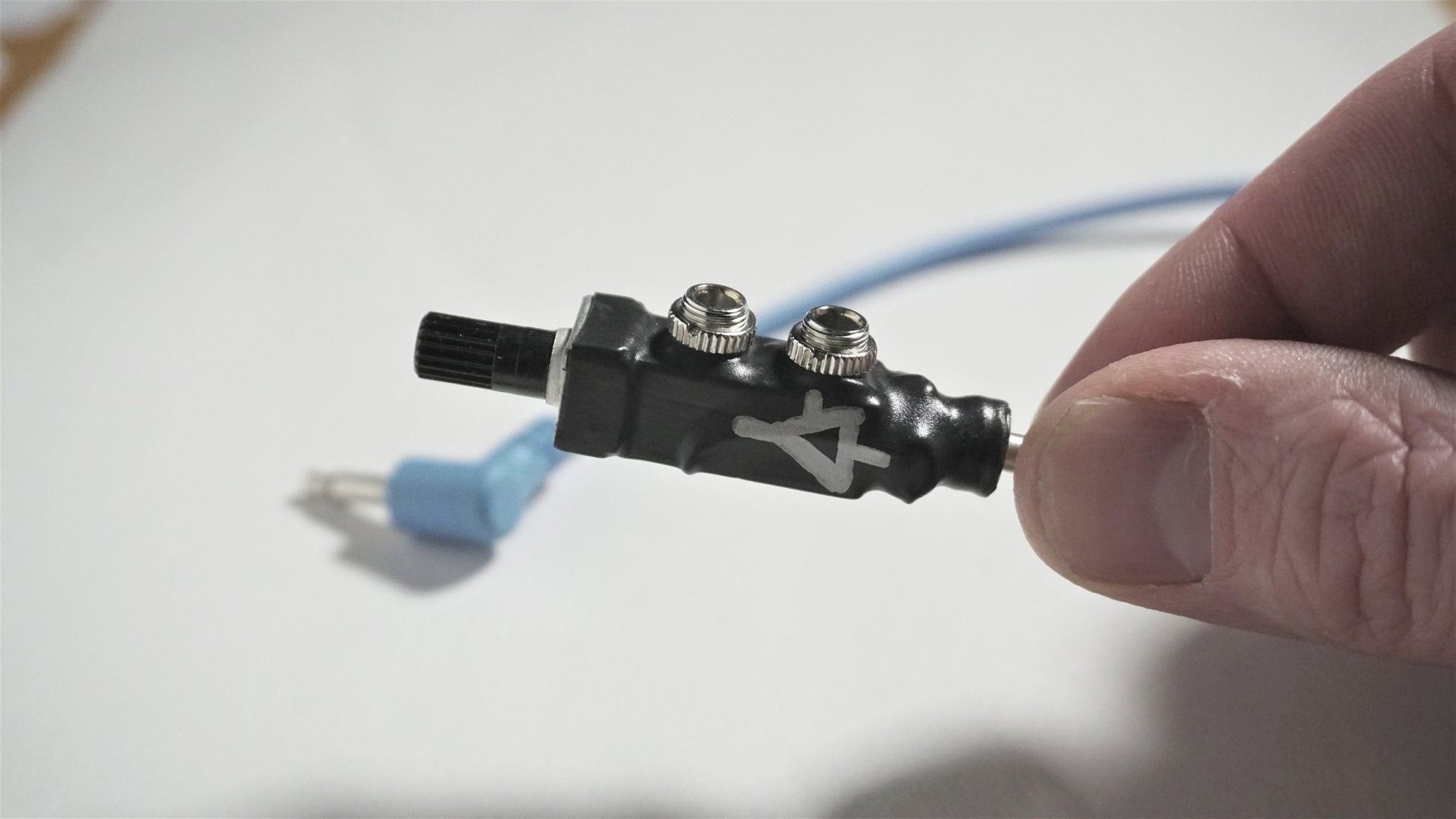 Middle input is for control voltage, the remaining two can be used as input/output in either direction. Knob controls how much CV reaches the vactrol. All the way to the right is fully open, all the way left is fully closed and in the middle is volume adjustment with a nice pluckey effect as the VCA closes