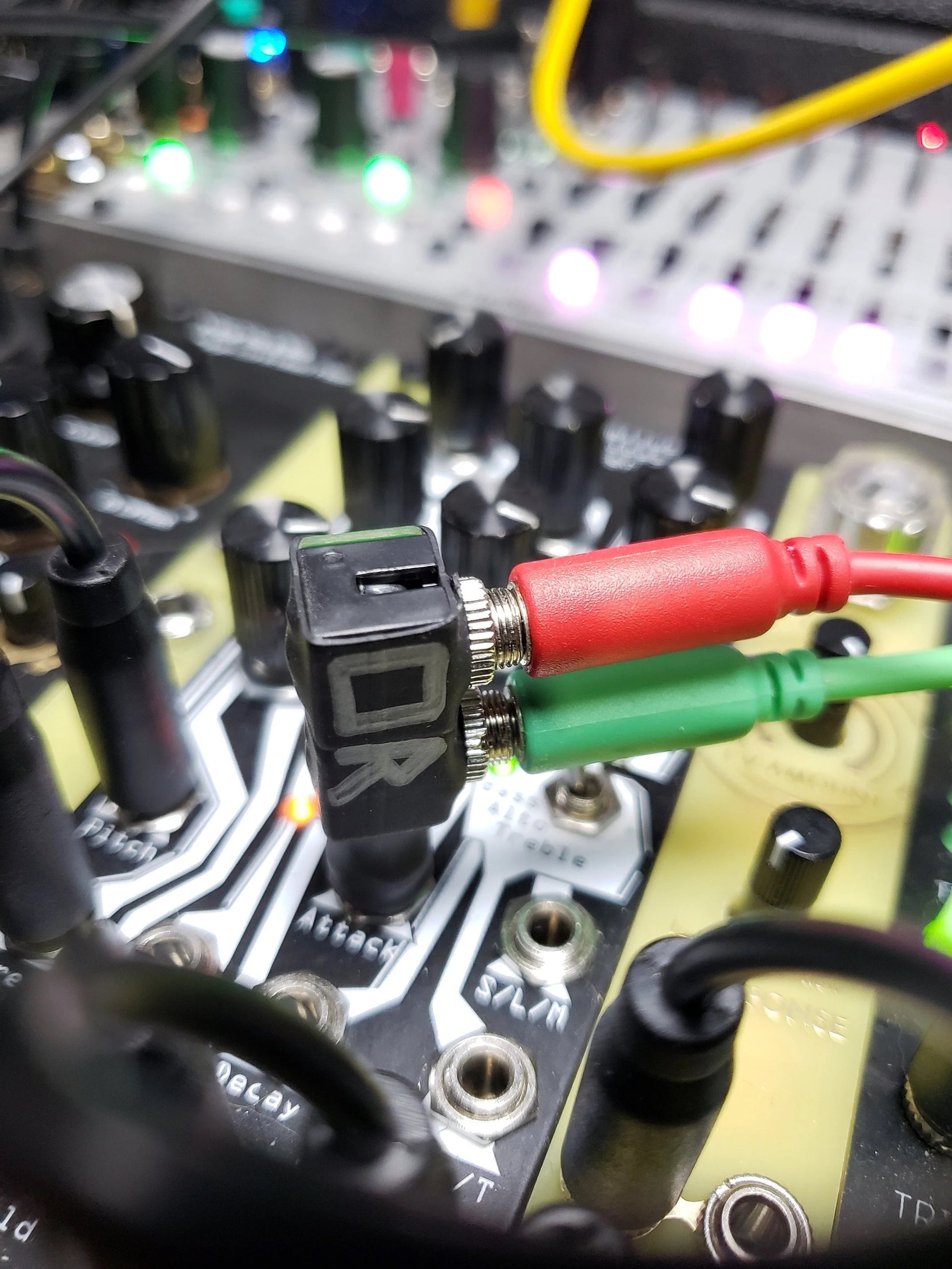 This listing is for a 0hp passive Diode OR logic Tidbit. This handy utility will take a Logic signal present at either of its two inputs and send it to the output. When no Logic HIGH input is present, this device’s output will read as 0 or Logic LOW. Perfect for mixing multiple clocks, gates, triggers and even CV!